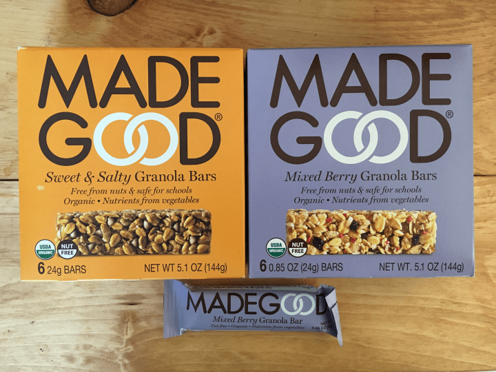 These are easy-to-pack, crunchy granola bars with nutrients from vegetables. Target carries them in three flavors–some sweet and some salty. They’re free from 8 of the most common allergens, and they taste so good you want to eat them all right there and then.